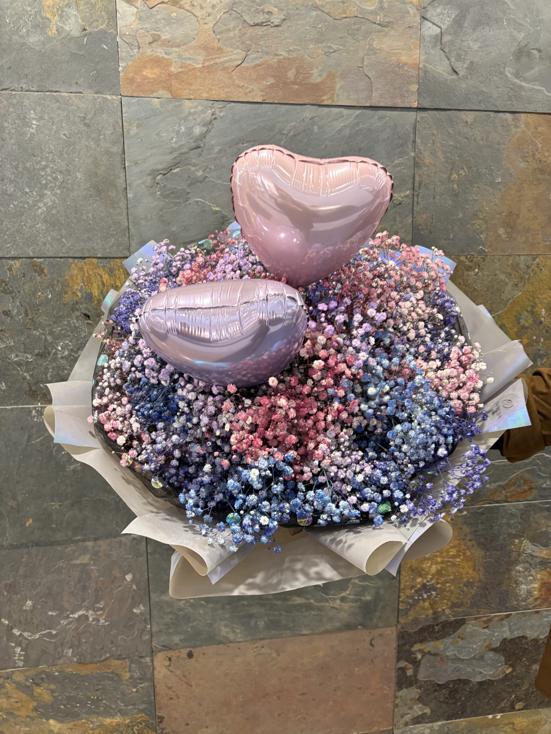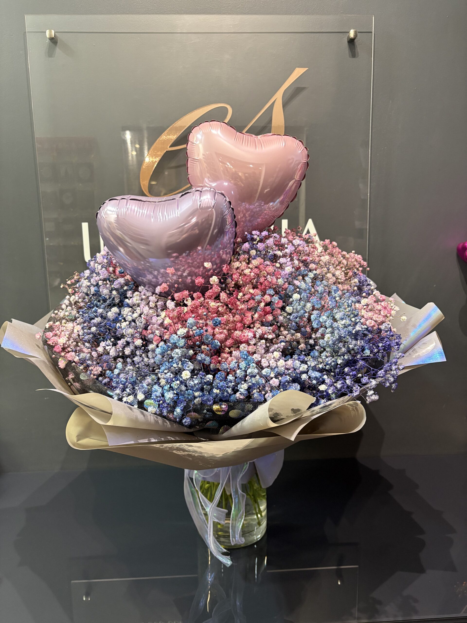 Bukiet z kolorową gipsówką